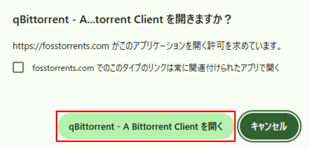 「qBittorrent – A Bittorrent Cilentを開く」をクリックします。