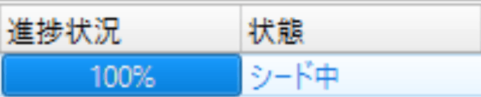 進捗状況が「100%」になり、状態が「移動中」から「シード中」に変われば、無事にデータの取得は完了です。