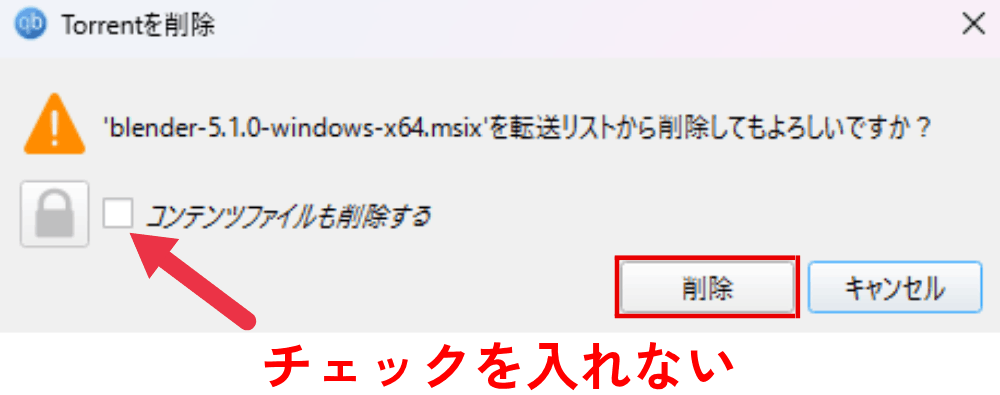 チェックを入れずに「削除」をクリックします。