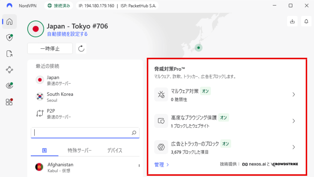 こうしたリスクを根本から防ぎたいなら、NordVPNの「脅威対策Pro」を有効にしておきましょう。