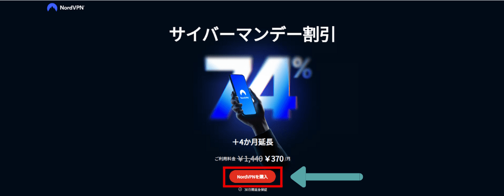 まずはじめに、NordVPNの公式ホームページにアクセスして「NordVPNを購入する」をクリックします。
